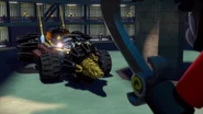 Cole, driving his newly rebuilt Earth Driller, gets called to fight the Giant Stone Warrior in Kryptarium Prison. Before he arrives, however, some police officers are facing the Giant Stone Warrior on their own. The Stone Warrior easily defeats them and moves to attack the Warden, before the Earth Driller bursts through the ground. Cole fights the Stone Warrior, accidentally letting Killow and Ultra Violet out of their cells.