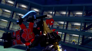 The Giant Stone Warrior, attempting to eat the lunch it was served to no avail, would be roused by the fight between the ninja and the Mechanic. Participating in the ensuing prison brawl, it'd eventually be stopped in its antics after being herded back to its cell by the guards, attempting to shrug them aside but eventually being escorted once again.