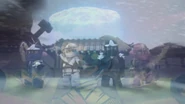 At the Frozen Wasteland, the ninja traveled there by boat. Zane attempted to get the Shurikens of Ice but was frozen by the Ice Dragon. The ninja managed to escape while sledding on Zane's ice cube, but crashed, breaking the ice cube. They then traveled to the Floating Ruins to get the Nunchucks of Lightning. The Skulkin beat them, but they were chased off. Unfortunately, Wisp appeared and tried to chase the ninja, but they managed to escape.