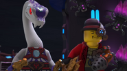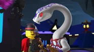 At the Lost City of Ouroboros, the ninja confront Pythor and the Serpentine, but as they charge into the arena, they are caged in, dropping their weapons in the proceeds. After Samurai X helps them escape with the use of their mech, Samurai X proceeds to steal back the Golden Weapons from the Serpentine.