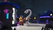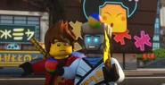 The Council of the Crystal King invade the monastery to steal the Golden Weapons. Despite Wu, Nya, P.I.X.A.L., Skylor, and the MiniPix's efforts, they succesfully steal them with Aspheera taking the Sword of Fire, Vangelis taking the Scythe of Quakes, The Mechanic taking the Shurikens of Ice, and Pythor taking the Nunchucks of Lightning, to his displeasure due to the lack of an electric cord.