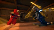 - Mister F and the Mechanic use the Shurikens of Destruction, the weapons previously used by Zane. Mister F, like Zane, was a Nindroid, and his original model fought Zane in Season 8. The Mechanic tried to dismantle Zane for spare parts in Season 6 (in an alternate timeline), and captured him to use him as a power source to bring Unagami into the real world in Season 12.