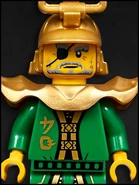 - The Ninjago letters on his robe translate to "BG," which could stand for "Body Guard."