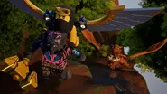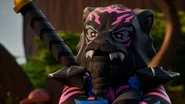 As Drix flew back to the First Land, one of the Dragonian Trackers carried the hammer. As Drix flew the Dragonian carried the hammer along with Ras. When Nokt noticed Ras, he grabs the hammer and then a captive Ras. After throwing Ras to the ground, Nokt gives Ras his hammer, refusing to fight someone who was weakened. As Ras gets up he picks up his hammer and clashes with Nokt's sword. Ras manage to hold agaisnt Nokt so Nokt used Shatterspin to take the tiger down before Arin crashed the Dragon-headed drone at Nokt.
