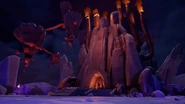 After activating creating a new Dragon Icon using the Forge of the Forgotten, Ras had his hammer on his back, as his master contacted him on his progress. After contacting his master, several Skulkin and Greenbone Warriors, lead by the Greenbone Leader, who accuse him of committing a serious offense by using the Forge of the Forgotten, an act only reserved for the undead and must face death as punishment for his actions. Undeterred and having the two Source Dragon Icons in his possession, Ras readies himself for battle against the undead skeletons.