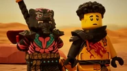 Ras used his hammer to fight against Lloyd who unexpectedly attacked him but Ras disrupted Lloyd's Spinjitzu, with a strong strike that cause him to stumble and then threw his hammer to knock Kai into the Nether-Space, which led to the liberation of Nokt. Subsequently, Nokt defeated Nya by using Shatterspin. Ras attempted to imprison Nya in the Nether-Space using his hammer. But Arin and Sora intervened, and Ras was struck by a hand from the Elemental Fire Mech.