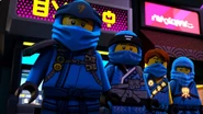 Jaywalkin 238, along with Dee-Jay 81, Beta Jay 137, and Jaybird 64, distract Unagami's aerial drones, allowing the ninja to escape to Scott's garage.