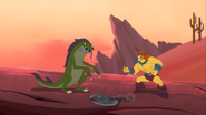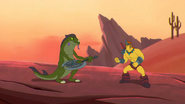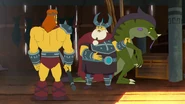 As Cole is fighting the Skull Sorcerer, Fungus and Korgran jump into action. They tell the Geckles and Munce to free themselves so they could join in.