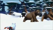 Meanwhile looking for the broken Land Bounty, the remaining ninja and Krag are cornered by the Frost Wolves. Luckily the Land Bounty is ahead and they manage to get to it in time, however, the door does not lock, causing Jay to make an explosion which creates a smokescreen, scaring off the Frost Wolves for some time. Nya then attempts to brutally repair the Land Bounty by removing parts. While trying to repair the Land Bounty, Cole and Krag hear the return of the Wolves and alongside Jay and Kai, they try to stall them until Nya can fix the Land Bounty. Fortunately, Nya fixes the Land Bounty and the ninja escape with Krag heading for the Castle of Ice.