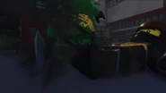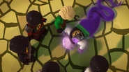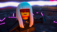 Ultra Violet was holding the Mask of Hatred while calling for a ride when she soon discovers Lloyd, Nya, and Dareth escaping with an unconscious Skylor. Ultra Violet used the mask to finish off Nya but Lloyd and Dareth arrive in their armored vehicle, ramming into the invulnerable Ultra Violet and sending her flying into a brick wall. When Ultra Violet emerges from the debris, the mask breaks apart, falling off of her face.