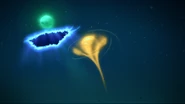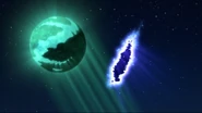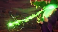 Djinns and Djinjagan Dragons possess their own form of magic fueled by their homeland Djinjago[19] that allows them to grant the desires of other beings. Nevertheless, wish magic is governed by specific regulations, prohibiting the fulfillment of wishes for more wishes, love, and harm towards others. Furthermore, it carries a sinister aspect, exemplified by the transformation of Tanabrax, a once ordinary puppeteer, into a malevolent shadow entity. The misuse of djinn artifacts also triggers a curse upon the individual responsible. It is usually associated with orange, blue, and purple.