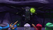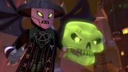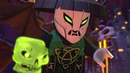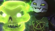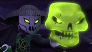 During their time in Shintaro Mountain, the ninja encountered the Skull Sorcerer and Hazza D'ur. The latter revived the Re-Awakened each time the ninja vanquished them, thereby granting the sorcerer an advantage. As a result, the ninja were forced to toil in the Dungeons of Shintaro alongside the Geckles and Munce to mine Vengestone. However, they eventually managed to escape, and Cole reunited with Wu and Vania. Together, the three discovered that Vangelis was the Skull Sorcerer, who revealed the Skull of Hazza D'ur to them. Vangelis used the magic relic to knock away Cole and Wu, revealing that it was the source of his power. Wu realized that they had to destroy the skull to defeat Vangelis.