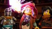 Aspheera was released from her pyramid and began to seek revenge on Wu for leaving her there. With her magic, she managed to extract the Element of Fire from Kai and chained him and the other ninja up before causing the pyramid to erupt with lava. By creating Fire Fang and the Elemental Cobras, Aspheera was able to acquire one of the Forbidden scrolls and launch an attack on the Monastery of Spinjitzu with an army of Pyro Vipers, who were brought back to life with her magic and Fire. Aspheera used the magical abilities of her staff and the Forbidden scroll to banish any defense weapons in her path and confront Wu. However, Zane intervenes, causing him to be banished to the Never-Realm.