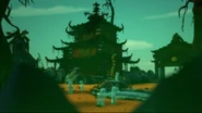 Later, when the ninja, Garmadon, Faith, and Wu retreated from the Oni, clouds of Dark Magic climbed over the monastery walls.