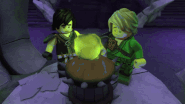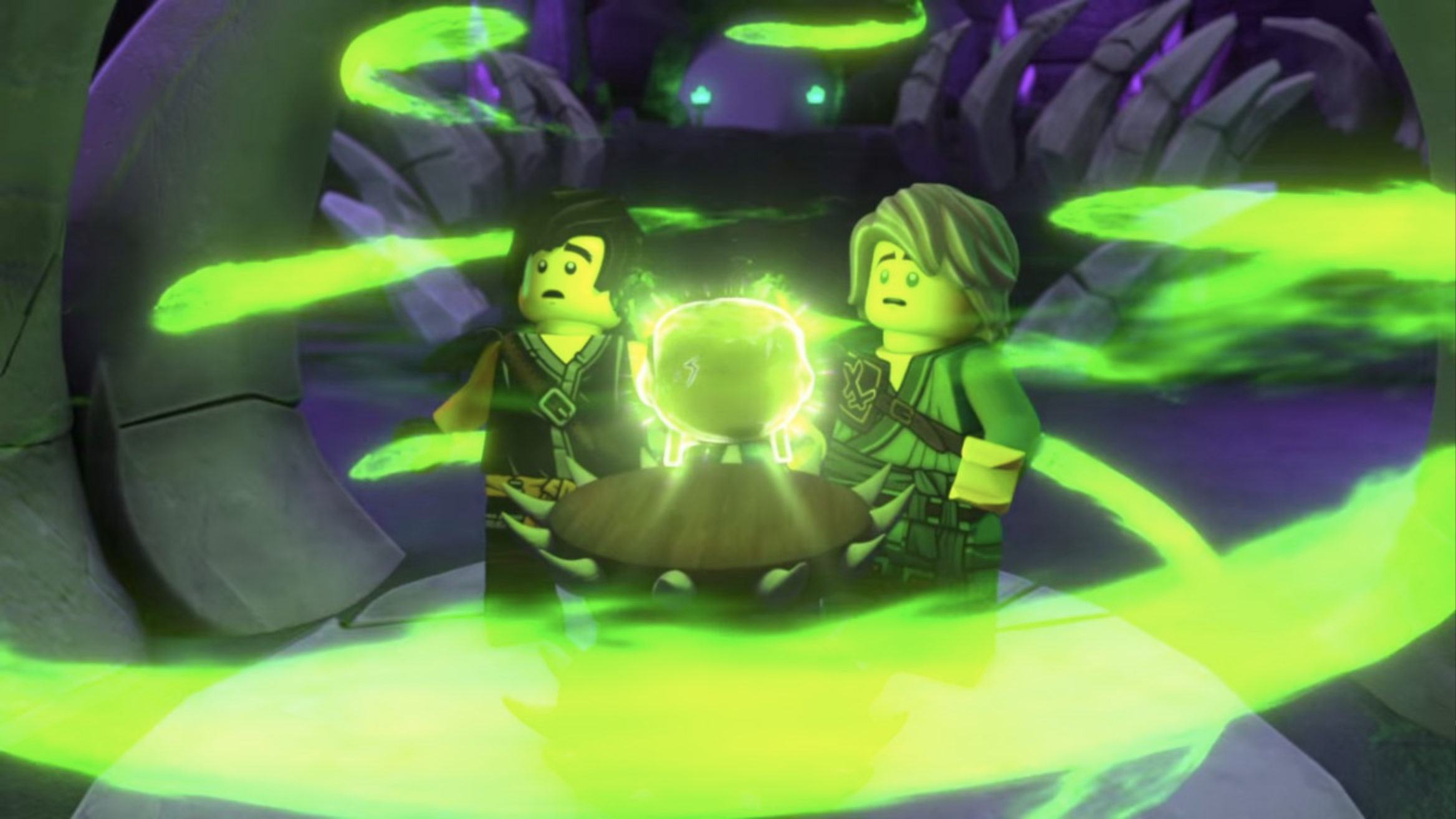 Later, P.I.X.A.L. used Aspheera's staff, with the Forbidden scroll attached to it, to channel the scroll's dark powers to send the Ninja and the Land Bounty to the Never-Realm.