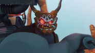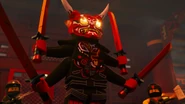 Skylor found the Mask of Hatred and suggests that if Lloyd's power doesn't return, then it might help him. Mystake warns Lloyd about the dangers of using the mask as "Oni power is Dark Magic." Skylor asks for his choice of using it. Lloyd goes back in and throws it in front of Harumi.