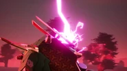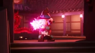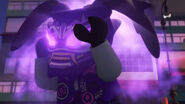 After Mystake transformed into her true Oni form, she summoned a staff using Dark Magic to form a black cloud, to allow Skylor to copy Garmadon's Destruction.