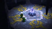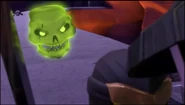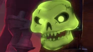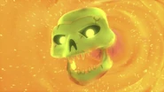 The adventurers managed to overcome all the traps and enter the restricted cave, where Hazza D'ur's skull was placed on a pedestal under a large statue. Korgran tried to take it with his hands, but the skull immediately came to life and tried to transform him with Dark Magic. However, Korgran managed to drop the skull and it remained dormant. Later, when Vangelis took the skull, Hazza D'ur's soul then appeared in the skull again and began to laugh with Vangelis.[14]