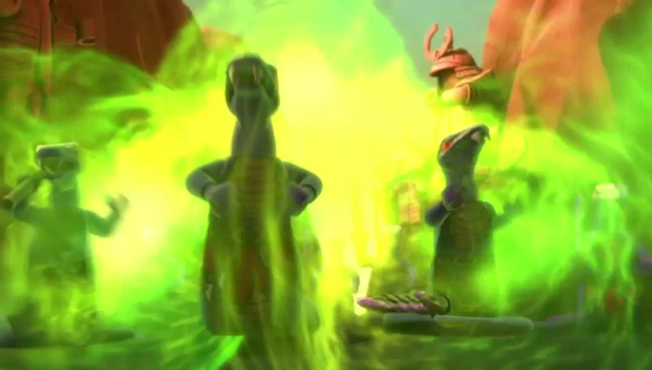 Later, Kapau and Chope cast the Spell of Transformation from the Book of Spells to turn themselves, their master, and the rest of the Anacondrai Cultists into Anacondrai.