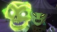 When the ninja were persuading the Geckles and Munce to attend a truce meeting, Vangelis used the Skull of Hazza D'ur's necromancy to resurrect Grief-Bringer. The dragon and the Re-Awakened then trapped the ninja, Geckles, and Munce in the Geckle Strong-Cave until the ninja were forced to turn themselves in. This allowed Vangelis and Hazza D'ur to recapture both the Geckles and Munce.