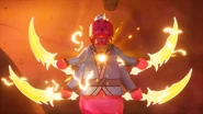 When the portal was been about to close, Rox separated her soul from her body and moved it into Jordana's body, therefore taking possession of the Imperian girl's body. Later, she effortlessly harnessed her Theroxian magic to control Cinder and the Wolf Mask Warriors, unleashing their complete potential as the warriors became infused with Chaos energy. Subsequently, Rox cast a static spell that rendered Nya, Zane, and Cole, as well as the Elemental Earth Mech, completely immobilized, but Jordana eventually managed to break the spell after being released from the evil Elemental Master's possession.