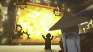 The Mechanic's henchmen begin building the Manifestation Gate in order to bring Unagami to Ninjago. The Mechanic then demands for the Prime Empire motherboard, but Zane claims it was destroyed. Knowing Zane is lying, the Mechanic brings in Wu and threatens to hurt Wu if Zane doesn't confess. Zane ends up revealing the motherboard, and the Mechanic inserts it into the gate. He then uses Zane to power the gateway although it had a high chance of destroying him.