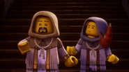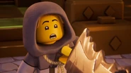 Marcus apologized, explaining that the archives were known for their detailed records. Nya then requested information on permanently stopping the MergeQuakes from a Scroll-Worm. Following the Scroll-Worm's retrieval of crucial information on the matter, it suddenly ceased its speech and turned red. Marcus, intrigued by the phenomenon, expressed his curiosity as he had never before witnessed such an occurrence. Suddenly, a group of Scroll-Worms launched an attack, ensnaring the ninja and Marcus in cocoons until they were freed by Arin. Nya asked Marcus whether he had any insight into the aggressive behavior of the Scroll-Worms. Marcus responded that it was conceivable that the worms had been cursed to react defensively when restricted information was sought from them. Kai then asked who might have inflicted such a curse. Marcus admitted that he was unaware of the identity of the perpetrator or the methodology employed to execute the curse.