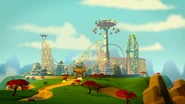 The Mega Monster Amusement Park (written as Megamonster Park on the sign) is an amusement park in Ninjago. It was formerly the location of the Hypnobrai Fangblade until the Serpentine dug it up.