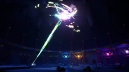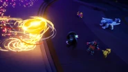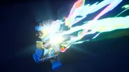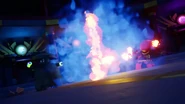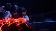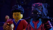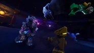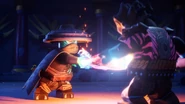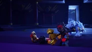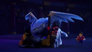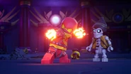 After Nokt and Rox take over the games, the ninja flee to the monastery where the rest of the Forbidden Five are freed. With her connection to the dragon ivory found in the horns and Riyu, Nya uses it to bring Kai and Bonzle back from the Nether-Space as well before Kai fights Nokt. However, just as the latter had the advantage, Roby used the Elemental Cup to strip him of his seized powers and return them to their rightful owners. As the Forbidden Five retreat to the Cloud Kingdom gate, Ras tries to intervene, but Nokt knocks him out and drags him to the portal. Arin, still desperate to find his parents, picks up Ras' hammer and goes after them before the portal explodes and scatters them all in different realms.