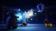 Arin and Cole continue their exhibition into the monastery and find the missing dragon horns hung above on the ceiling, here they also find out from Wu that he caused the Merge before the latter scatters parts of his spirit across many gates.