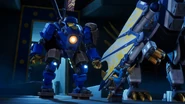 Wyldfyre flew the Mech Storm Rider to the Monastery of Gates to meet up with the Ninja in the First Land to help save the world to battle Thunderfang.