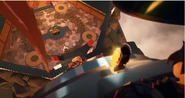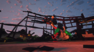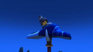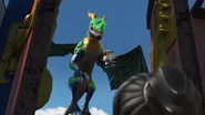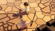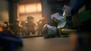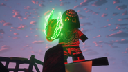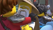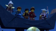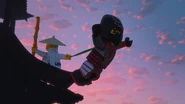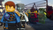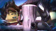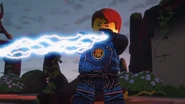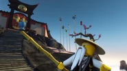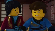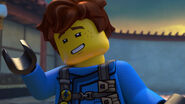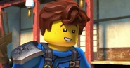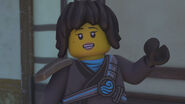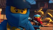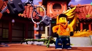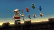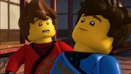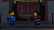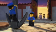 When Jay sees the mural of his Storm Glider, he runs around the courtyard, making helicopter sounds while spinning his nunchucks. Then he reminisces on a battle against Pythor using his Nunchucks of Lightning.