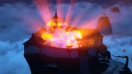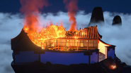 When Wu and Nya left the monastery to pick up the ninja from Lloyd's treehouse fortress, they returned, only to see it has been burned down by the Hypnobrai led by Skales.