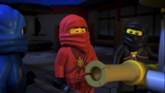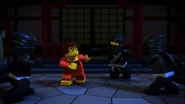 Master Wu took Kai to the monastery to train him in the ways of the ninja. After several days of failure on the training course, Kai succeeded in mastering it. That night while Kai was preparing for bed inside the monastery's bathroom, Cole, Jay, and Zane snuck in and confronted him.