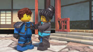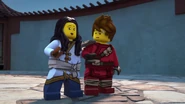 The ninja, who had gone back in time, went to the monastery to kidnap Nya so the future wouldn't change. While Cole, Zane, and Jay kidnap Nya and fight their past selves, Kai inspires the Kai of the past to become a ninja.