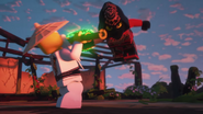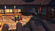 While the ninja were gone, Nya used the time to practice on the training course, though was forced to give it up when the ninja returned and intended to hold a Green Ninja tournament in the courtyard.