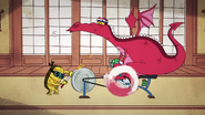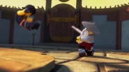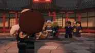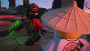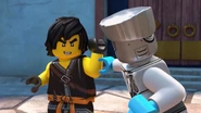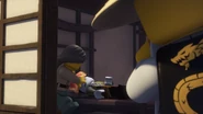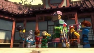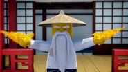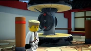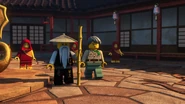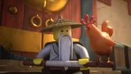 Inside the monastery, Wu tells the ninja that they have become incredibly lazy and challenges the ninja to withstand time in a room with a chicken. When Wu leaves, the chicken is released and electrocutes them before they are able to trap his pet.