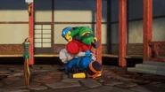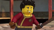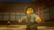 During Wu's training in the monastery, he discovered what damage effects Spinjitzu could do if it is not used properly. As he tried a movement called "mantis kick", he turned his pelvis more than he had and kicked Garmadon so that it flew over the supporting beam and almost the entire roof fell on him. Garmadon then attacked Wu with such anger as Wu had never seen before. In anger he did not use Spinjitzu properly and almost destroyed the whole monastery. However, his father managed to stop him.[6]