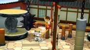 Master Wu uses the courtyard and surrounding area to reeducate the ninja on the fundamental traits of Spinjitzu.