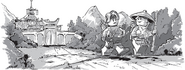 Kruncha and Nuckal on the monastery's courtyard with Kai