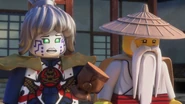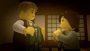 At the monastery, Wu told Zane how he and Garmadon fought over the Golden Weapons in the Monastery before his kimono saved him and trapped Garmadon in the Underworld.