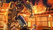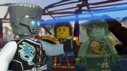 Immediately after this, however, the Time Twins from forty years in the future arrived in a snake mech at the monastery and attacked the Elemental Masters. Ultimately, thanks to the efforts of Kai and Nya, the future masters of Fire and Water, the twins were forced to retreat from the era and Wu told his younger self to gather Obscuritea to erase everyone's memories to restore the timeline.[8]