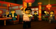 When Jay revealed to be a snake in a restaurant at Mega Monster Amusement Park, several people attack him with their food, some consisting of roasted mud newts.