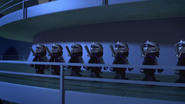 The Nindroid Warriors in the vaults stood motionlessly contained in a glass case down the hall from the Realm Crystal.