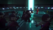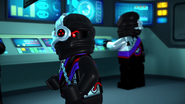 More Nindroid Warriors (presumably reactivated by Pythor) attacked Borg Tower to stop the ninja from interfering with the Digital Overlord.
