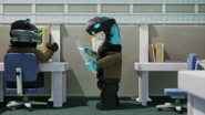 Requiring money to sustain their systems, several Nindroids resorted to committing petty crimes after they were rejected from regular jobs because of their past affiliation with the Overlord. These Nindroids were caught by the Ninjago Police and placed in Kryptarium Prison.[2] A few of the Nindroids left in Ed & Edna's junkyard were reprogrammed to help the courple.[1]