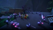 Nindroid Warriors were dispersed throughout Ninjago to protect the Overlord's vital assets (such as the Storm Farms), establish security perimeters, and locate the Techno Blades. A group of them led by P.I.X.A.L. were sent to Garmadon's monastery, where they faced off against the ninja for the first time. However, they were all deactivated when the ninja destroyed the Power station.