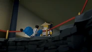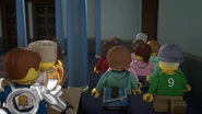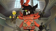 The ninja are later escorted back to the Museum by the police and apologize for the crime, to which the Museum Curator accepts the apology but questions what happened to the Grundal's bones. The ninja comes to the conclusion that Lord Garmadon must have succeeded in reviving the Grundal, and attempt to warn the police and Director but to no avail. The ninja escape by discreetly stealing some clothes from nearby school kids, who were on a field trip and make their way outside, the Grundal appears on top of the building, frightening the students outside before running off. It was soon defeated in Doomsday Comix by Lloyd.