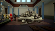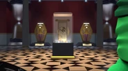 The Museum is broken into by Lord Garmadon and the Serpentine Generals, for the purpose of reviving the fossilized remains of the Grundle with the Mega Weapon. The ninja interrupt the process and Lord Garmadon and the Serpentine flee, stealing a golden sarcophagus on their way out. Realizing they cannot fit the sarcophagus through a manhole, they leave it behind and escape, leaving the ninja to be accused of the item's theft.