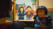 The ninja are called to the museum to investigate jewelry thefts. While they are there, the ninja reflected on all of the battles they have had at the museum, with Wu noting that the interior of the museum seemed to be constantly changing; at this particular time, the museum's main gallery was displaying art inspired by nature. While looking at the art, what is presumed to be a statue of a bird swooped at Master Wu, prompting him to tell a story about a time he and Garmadon encountered magical paintings. After telling his story, the team realized that the bird had been stealing jewelry and was stashing it in the walls! After stopping the thieving magpie, Cole and Nya noticed a painting identical to the one in Wu's story, and saw that it was in fact signed by Mindaro. Although the ninja expressed excitement over the discovery, Wu remained cautious and suspiciously inspected the painting before dismissing his worries. As he left the museum, however, a small, dark cloud appeared in the painting's otherwise bright sky.